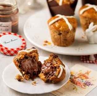Apple Glazed Hot Cross Buns - filled, topped and glazed with Bonne Maman Caramelised Apple Spread – combine juicy sultanas, warming spices and a hint of lemon. For a chocolatey alternative, these Hot Cross Chocolate Muffins deliver all the classic flavours of a hot cross bun with a gooey hazelnut chocolate centre, made using Bonne Maman award-winning Hazelnut Chocolate Spread.